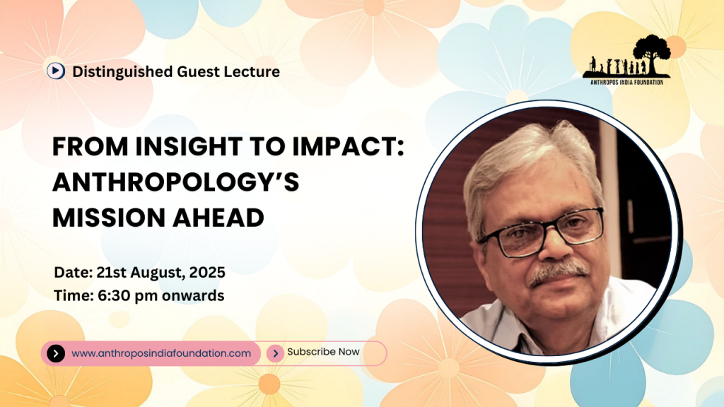 The lecture “From Insight to Impact – Anthropology’s Mission Ahead” by Prof. Arbind Sinha, organized by the Anthropos India Foundation as a part of their monthly distinguished guest lecture on 21st August 2025 at 6:30pm through zoom meeting and YouTube Live, focused on the need for anthropology to move beyond theory and create practical change in society.
