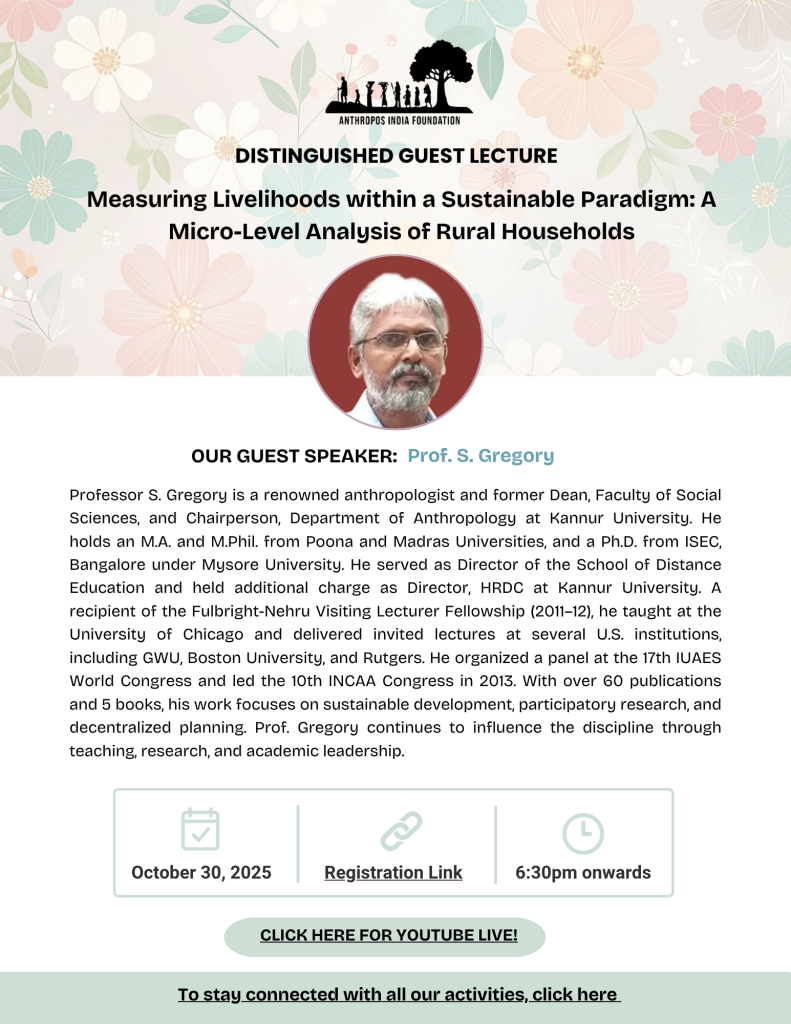 The lecture was attended by approximately 45 participants via Google Meet and around 95 participants through YouTube Live, including scholars, faculty members, and social scientists from various institutes across India. It was recommended that local self-governance bodies (such as Gram Panchayats) adopt this multi-dimensional framework to enhance sustainable livelihood initiatives. By leveraging data-driven, targeted, and effective governance strategies, this approach can support the development of resilient and sustainable communities.