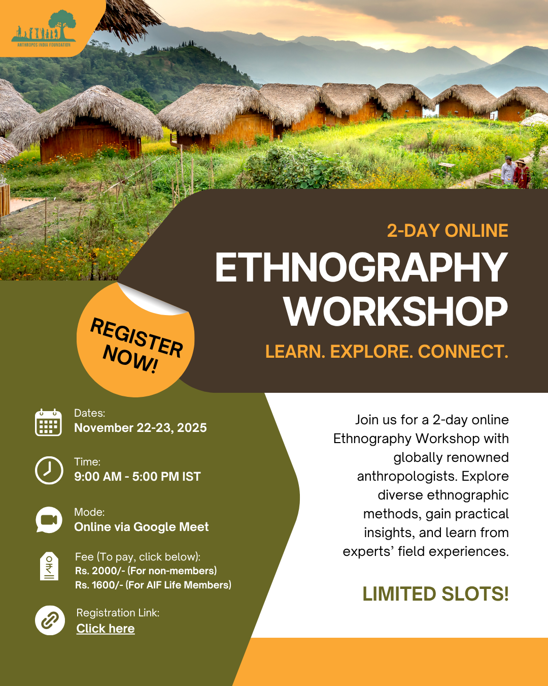 The 2-day online Ethnography Workshop on 22nd and 23rd November, 2025 organised by Anthropos India Foundation (AIF), attended by scholars, students, and professionals from different parts of India, exploring diverse ethnographic methods, gaining practical insights, and learning from experts’ field experiences.